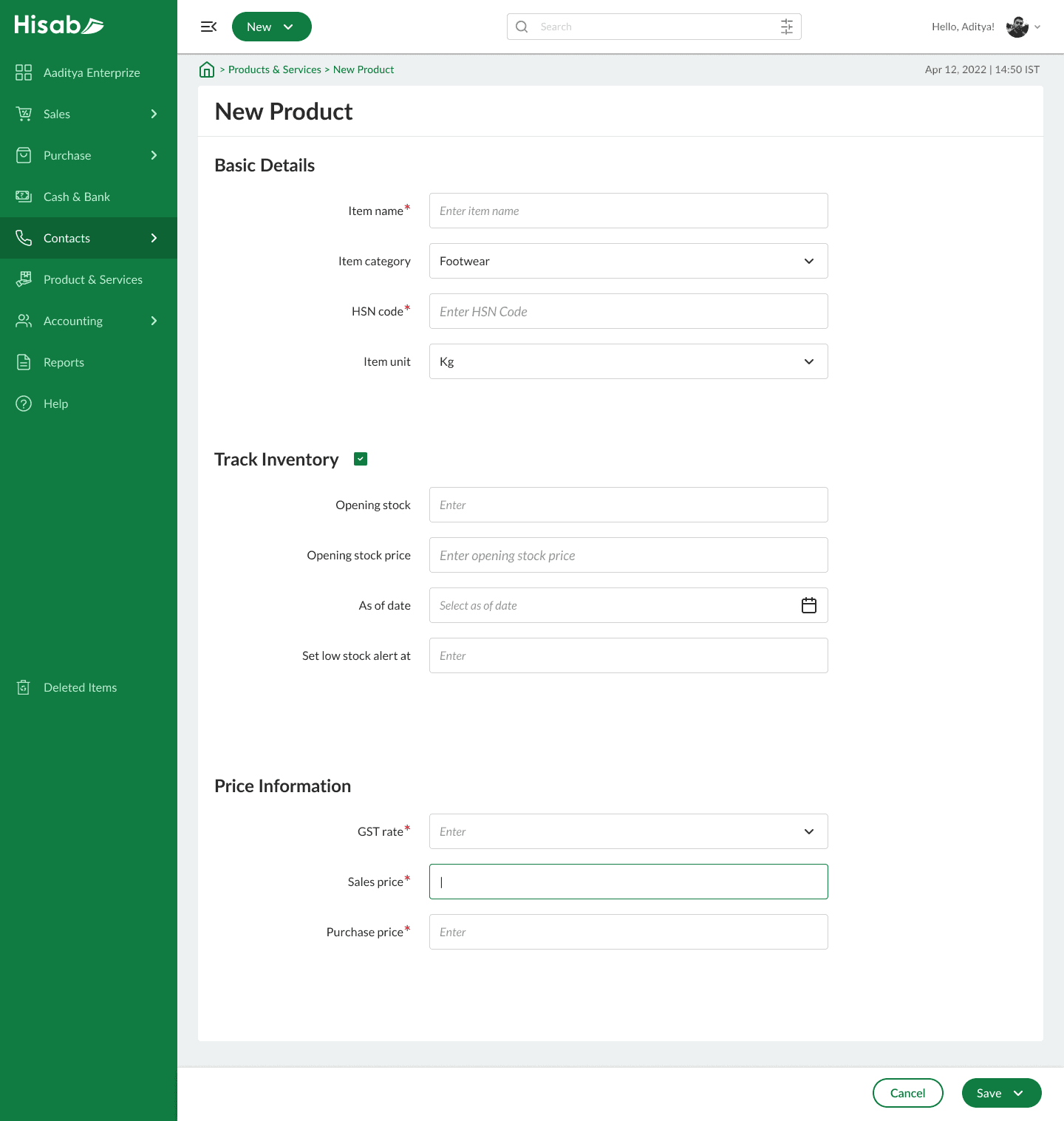 Forms in Hisab are finalised after taking inputs from our respondents. A detailed form like in other applications, doesn't really apply to businesses of small scale. So we made the decision to remove those, optimising speed.